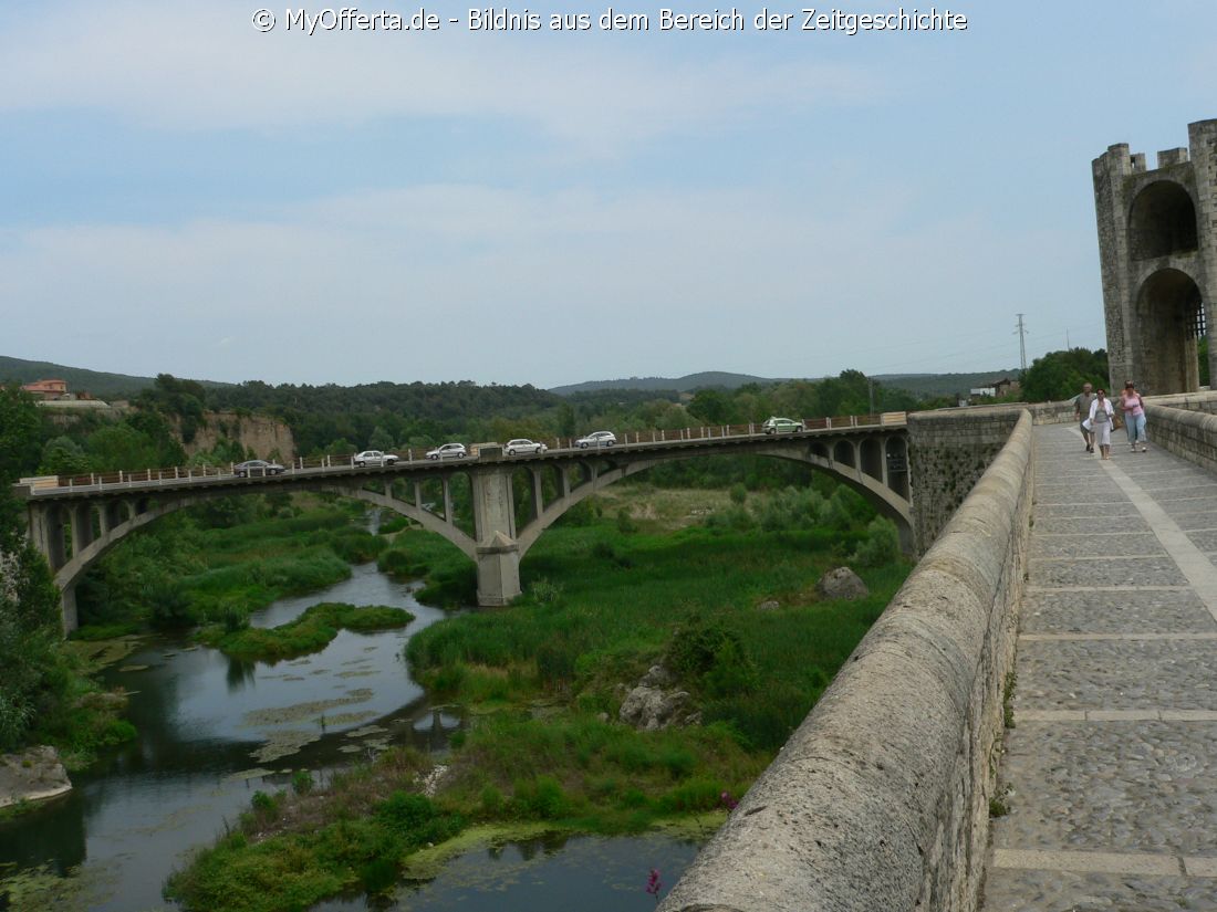 Besalu, zweifellos eine der am besten erhaltenen antiken Staedte Kataloniens, war im Mittelalter ein wichtiger Knotenpunkt. Eine seiner bemerkenswerten Eigenschaften ist die romanische Bruecke aus dem 12. Jahrhundert, die den Fluss Fluvia ueberquert. Die schmalen Backsteinstrassen der Stadt schaffen eine einzigartige romantische Atmosphaere und viele schoene Terrassen ermoeglichen es Ihnen, die Atmosphaere zu geniessen. Foto: Marek Walczak, alle Rechte vorbehalten! |
