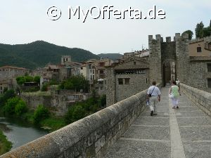 Besalu, zweifellos eine der am besten erhaltenen antiken Staedte Kataloniens, war im Mittelalter ein wichtiger Knotenpunkt. Eine seiner bemerkenswerten Eigenschaften ist die romanische Bruecke aus dem 12. Jahrhundert, die den Fluss Fluvia ueberquert. Die schmalen Backsteinstrassen der Stadt schaffen eine einzigartige romantische Atmosphaere und viele schoene Terrassen ermoeglichen es Ihnen, die Atmosphaere zu geniessen. Foto: Marek Walczak, alle Rechte vorbehalten! |