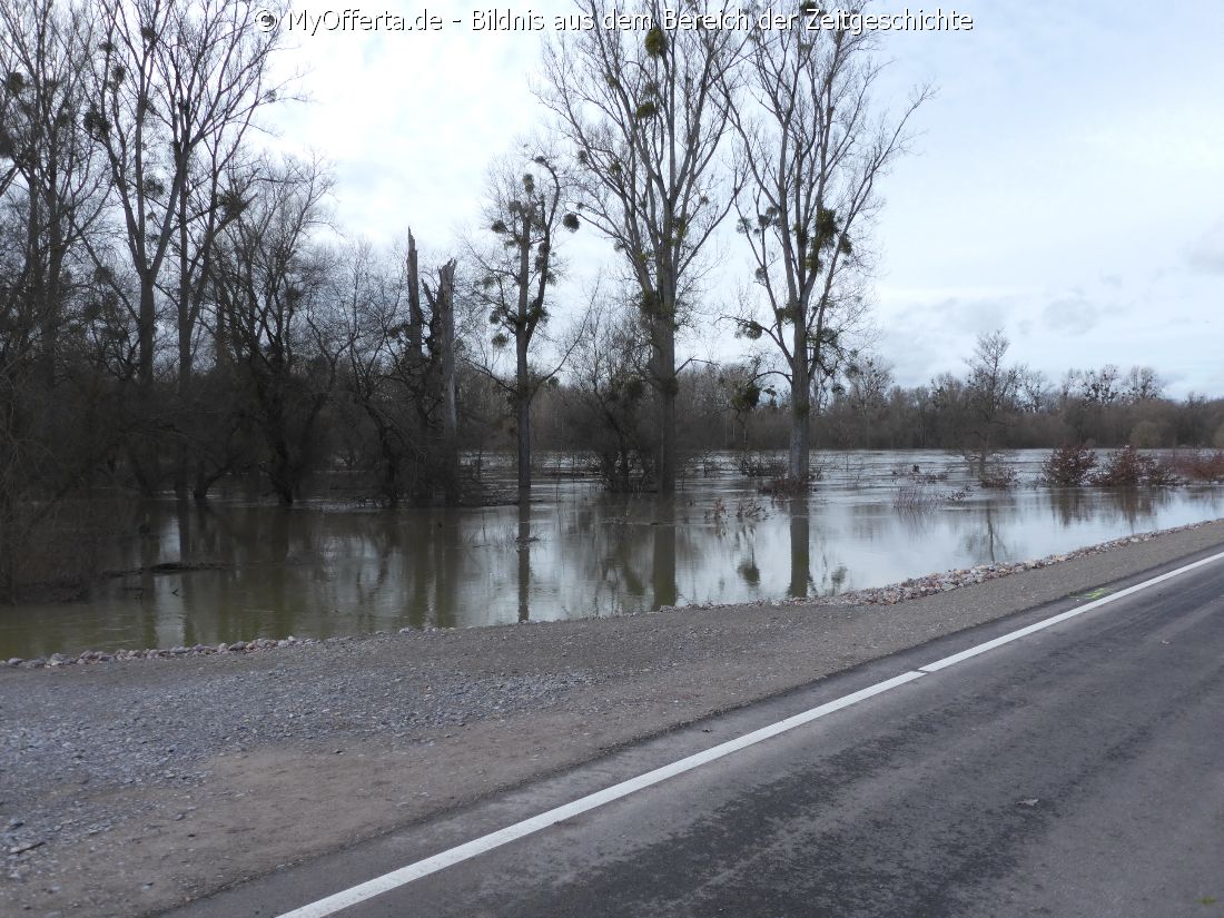 Hochwasser am Rhein in Leopoldshafen am 04.02.2021