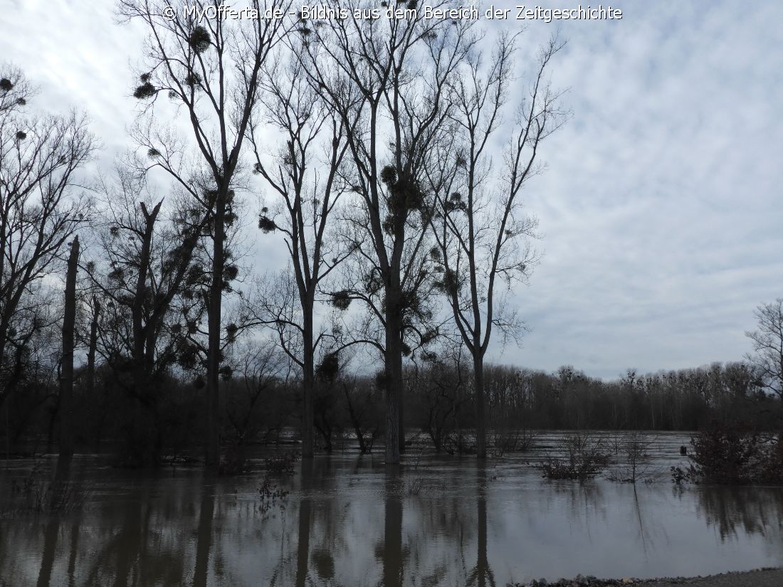 Hochwasser am Rhein in Leopoldshafen am 04.02.2021