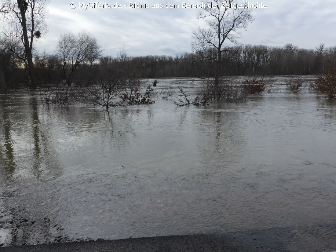 Hochwasser am Rhein in Leopoldshafen am 04.02.2021