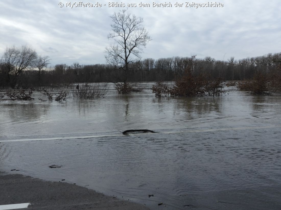 Hochwasser am Rhein in Leopoldshafen am 04.02.2021