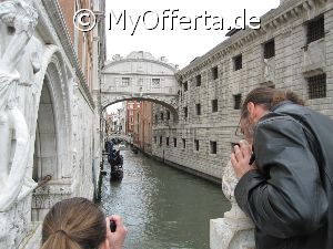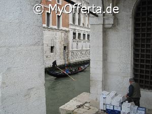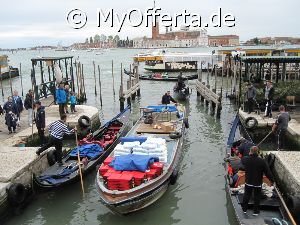 Punta Sabbioni ist ein wichtiger Faehrhafen fuer die Wasserbusse von Venedig. Der Hafen liegt auf dem Festland auf einer Halbinsel. Er wird vor allem von Touristen genutzt, die in oder um den Badeort Lido di Jesolo oder Cavallino ihren Urlaub verbringen und eines Tagesausflug nach Venedig machen. Sogenannte Wasserbusse oder Vaporetti (Personenfaehren) bringen in der Saison taeglich viele tausend Touristen von Punta Sabbioni in etwa 30 Minuten direkt ins Zentrum der Altstadt von Venedig nahe dem Markusplatz. Die zwei wichtigsten Gebaeude am Platz sind der Dogenpalast und der Markusdom. Ein weiteres wichtiges Bauwerk ist der Markusturm, das Wahrzeichen von Venedig. Die beruehmte Wasserstrasse von Venedig Canale Grande muendet unweit des Platzes Piazza San Marco ins Meer. Beruehmt ist der Platz heute auch fuer luxurioese Restaurants und Cafes, Tauben und Hochwasser. Foto: Dipl.-Ing. Marek Walczak, alle Rechte vorbehalten!