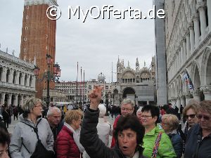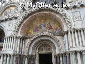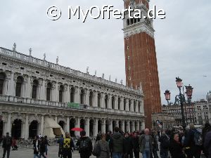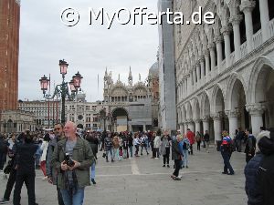 Punta Sabbioni ist ein wichtiger Faehrhafen fuer die Wasserbusse von Venedig. Der Hafen liegt auf dem Festland auf einer Halbinsel. Er wird vor allem von Touristen genutzt, die in oder um den Badeort Lido di Jesolo oder Cavallino ihren Urlaub verbringen und eines Tagesausflug nach Venedig machen. Sogenannte Wasserbusse oder Vaporetti (Personenfaehren) bringen in der Saison taeglich viele tausend Touristen von Punta Sabbioni in etwa 30 Minuten direkt ins Zentrum der Altstadt von Venedig nahe dem Markusplatz. Die zwei wichtigsten Gebaeude am Platz sind der Dogenpalast und der Markusdom. Ein weiteres wichtiges Bauwerk ist der Markusturm, das Wahrzeichen von Venedig. Die beruehmte Wasserstrasse von Venedig Canale Grande muendet unweit des Platzes Piazza San Marco ins Meer. Beruehmt ist der Platz heute auch fuer luxurioese Restaurants und Cafes, Tauben und Hochwasser. Foto: Dipl.-Ing. Marek Walczak, alle Rechte vorbehalten!