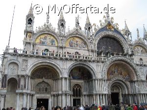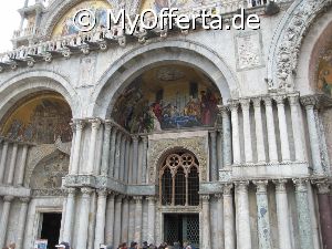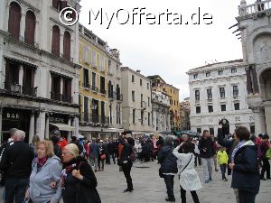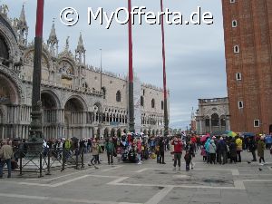 Punta Sabbioni ist ein wichtiger Faehrhafen fuer die Wasserbusse von Venedig. Der Hafen liegt auf dem Festland auf einer Halbinsel. Er wird vor allem von Touristen genutzt, die in oder um den Badeort Lido di Jesolo oder Cavallino ihren Urlaub verbringen und eines Tagesausflug nach Venedig machen. Sogenannte Wasserbusse oder Vaporetti (Personenfaehren) bringen in der Saison taeglich viele tausend Touristen von Punta Sabbioni in etwa 30 Minuten direkt ins Zentrum der Altstadt von Venedig nahe dem Markusplatz. Die zwei wichtigsten Gebaeude am Platz sind der Dogenpalast und der Markusdom. Ein weiteres wichtiges Bauwerk ist der Markusturm, das Wahrzeichen von Venedig. Die beruehmte Wasserstrasse von Venedig Canale Grande muendet unweit des Platzes Piazza San Marco ins Meer. Beruehmt ist der Platz heute auch fuer luxurioese Restaurants und Cafes, Tauben und Hochwasser. Foto: Dipl.-Ing. Marek Walczak, alle Rechte vorbehalten!