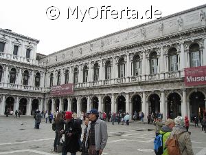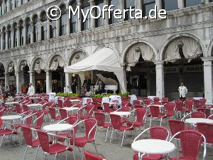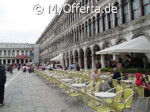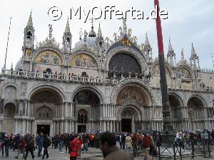 Punta Sabbioni ist ein wichtiger Faehrhafen fuer die Wasserbusse von Venedig. Der Hafen liegt auf dem Festland auf einer Halbinsel. Er wird vor allem von Touristen genutzt, die in oder um den Badeort Lido di Jesolo oder Cavallino ihren Urlaub verbringen und eines Tagesausflug nach Venedig machen. Sogenannte Wasserbusse oder Vaporetti (Personenfaehren) bringen in der Saison taeglich viele tausend Touristen von Punta Sabbioni in etwa 30 Minuten direkt ins Zentrum der Altstadt von Venedig nahe dem Markusplatz. Die zwei wichtigsten Gebaeude am Platz sind der Dogenpalast und der Markusdom. Ein weiteres wichtiges Bauwerk ist der Markusturm, das Wahrzeichen von Venedig. Die beruehmte Wasserstrasse von Venedig Canale Grande muendet unweit des Platzes Piazza San Marco ins Meer. Beruehmt ist der Platz heute auch fuer luxurioese Restaurants und Cafes, Tauben und Hochwasser. Foto: Dipl.-Ing. Marek Walczak, alle Rechte vorbehalten!