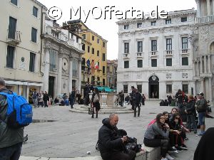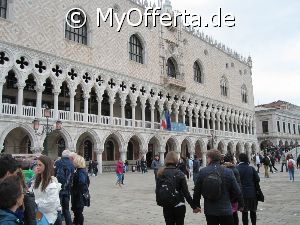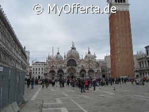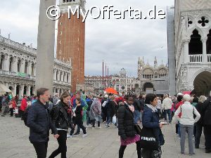 Punta Sabbioni ist ein wichtiger Faehrhafen fuer die Wasserbusse von Venedig. Der Hafen liegt auf dem Festland auf einer Halbinsel. Er wird vor allem von Touristen genutzt, die in oder um den Badeort Lido di Jesolo oder Cavallino ihren Urlaub verbringen und eines Tagesausflug nach Venedig machen. Sogenannte Wasserbusse oder Vaporetti (Personenfaehren) bringen in der Saison taeglich viele tausend Touristen von Punta Sabbioni in etwa 30 Minuten direkt ins Zentrum der Altstadt von Venedig nahe dem Markusplatz. Die zwei wichtigsten Gebaeude am Platz sind der Dogenpalast und der Markusdom. Ein weiteres wichtiges Bauwerk ist der Markusturm, das Wahrzeichen von Venedig. Die beruehmte Wasserstrasse von Venedig Canale Grande muendet unweit des Platzes Piazza San Marco ins Meer. Beruehmt ist der Platz heute auch fuer luxurioese Restaurants und Cafes, Tauben und Hochwasser. Foto: Dipl.-Ing. Marek Walczak, alle Rechte vorbehalten!