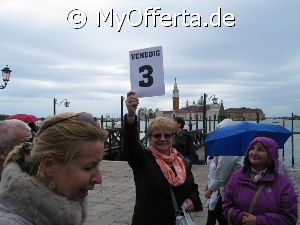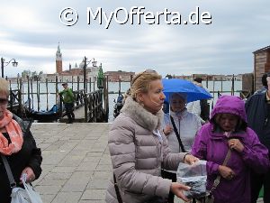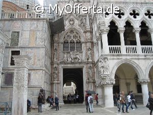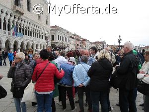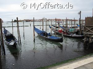 Punta Sabbioni ist ein wichtiger Faehrhafen fuer die Wasserbusse von Venedig. Der Hafen liegt auf dem Festland auf einer Halbinsel. Er wird vor allem von Touristen genutzt, die in oder um den Badeort Lido di Jesolo oder Cavallino ihren Urlaub verbringen und eines Tagesausflug nach Venedig machen. Sogenannte Wasserbusse oder Vaporetti (Personenfaehren) bringen in der Saison taeglich viele tausend Touristen von Punta Sabbioni in etwa 30 Minuten direkt ins Zentrum der Altstadt von Venedig nahe dem Markusplatz. Die zwei wichtigsten Gebaeude am Platz sind der Dogenpalast und der Markusdom. Ein weiteres wichtiges Bauwerk ist der Markusturm, das Wahrzeichen von Venedig. Die beruehmte Wasserstrasse von Venedig Canale Grande muendet unweit des Platzes Piazza San Marco ins Meer. Beruehmt ist der Platz heute auch fuer luxurioese Restaurants und Cafes, Tauben und Hochwasser. Foto: Dipl.-Ing. Marek Walczak, alle Rechte vorbehalten!
