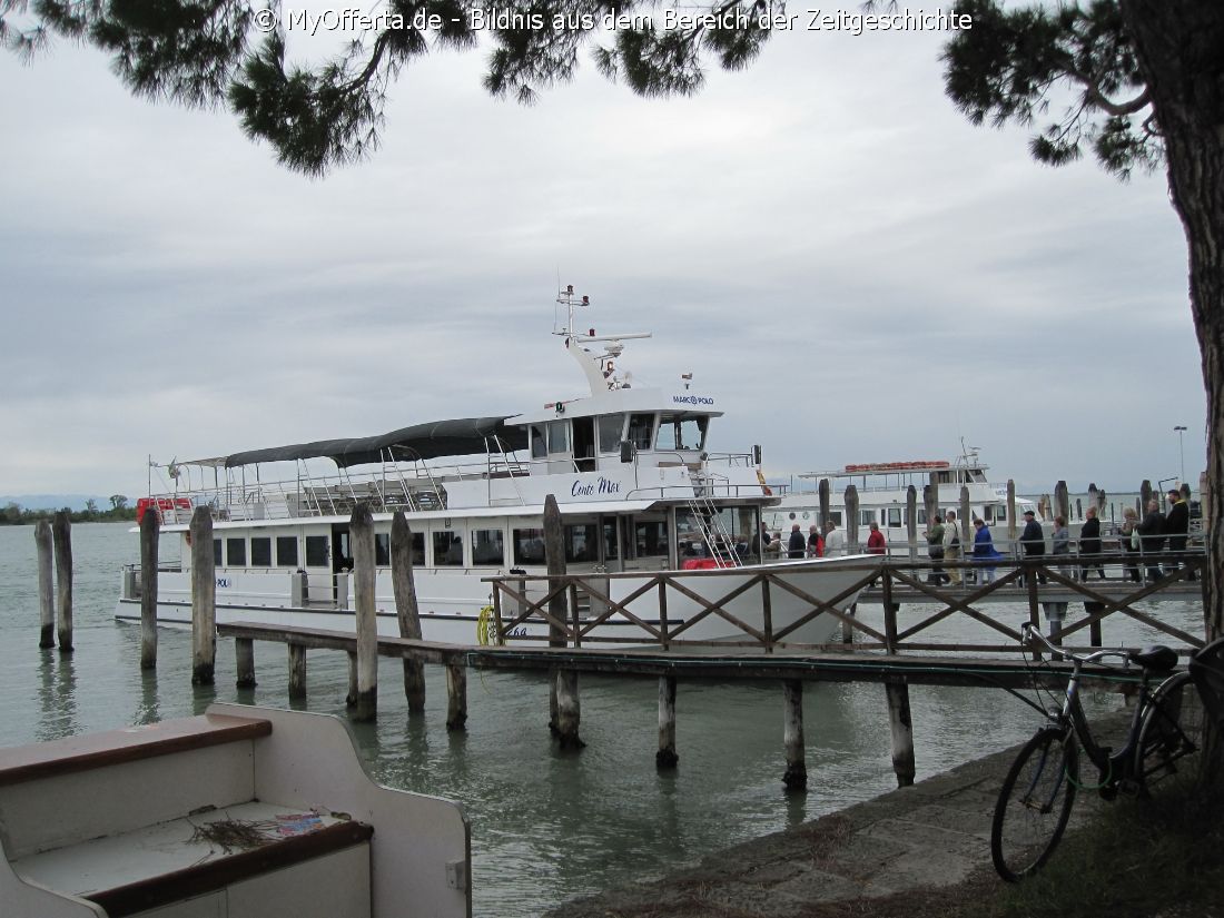 Punta Sabbioni ist ein wichtiger Faehrhafen fuer die Wasserbusse von Venedig. Der Hafen liegt auf dem Festland auf einer Halbinsel. Er wird vor allem von Touristen genutzt, die in oder um den Badeort Lido di Jesolo oder Cavallino ihren Urlaub verbringen und eines Tagesausflug nach Venedig machen. Sogenannte Wasserbusse oder Vaporetti (Personenfaehren) bringen in der Saison taeglich viele tausend Touristen von Punta Sabbioni in etwa 30 Minuten direkt ins Zentrum der Altstadt von Venedig nahe dem Markusplatz. Die zwei wichtigsten Gebaeude am Platz sind der Dogenpalast und der Markusdom. Ein weiteres wichtiges Bauwerk ist der Markusturm, das Wahrzeichen von Venedig. Die beruehmte Wasserstrasse von Venedig Canale Grande muendet unweit des Platzes Piazza San Marco ins Meer. Beruehmt ist der Platz heute auch fuer luxurioese Restaurants und Cafes, Tauben und Hochwasser. Foto: Dipl.-Ing. Marek Walczak, alle Rechte vorbehalten! |