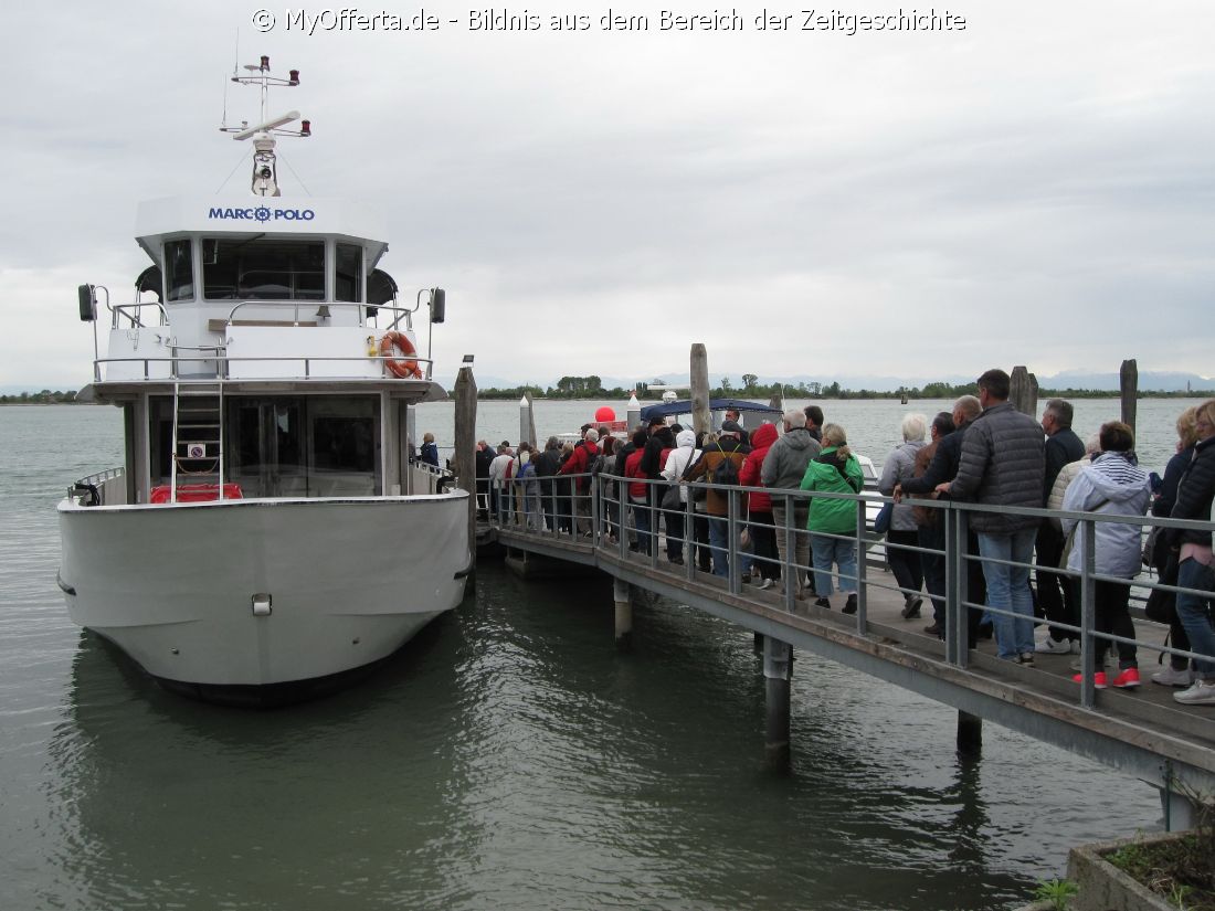 Punta Sabbioni ist ein wichtiger Faehrhafen fuer die Wasserbusse von Venedig. Der Hafen liegt auf dem Festland auf einer Halbinsel. Er wird vor allem von Touristen genutzt, die in oder um den Badeort Lido di Jesolo oder Cavallino ihren Urlaub verbringen und eines Tagesausflug nach Venedig machen. Sogenannte Wasserbusse oder Vaporetti (Personenfaehren) bringen in der Saison taeglich viele tausend Touristen von Punta Sabbioni in etwa 30 Minuten direkt ins Zentrum der Altstadt von Venedig nahe dem Markusplatz. Die zwei wichtigsten Gebaeude am Platz sind der Dogenpalast und der Markusdom. Ein weiteres wichtiges Bauwerk ist der Markusturm, das Wahrzeichen von Venedig. Die beruehmte Wasserstrasse von Venedig Canale Grande muendet unweit des Platzes Piazza San Marco ins Meer. Beruehmt ist der Platz heute auch fuer luxurioese Restaurants und Cafes, Tauben und Hochwasser. Foto: Dipl.-Ing. Marek Walczak, alle Rechte vorbehalten! |