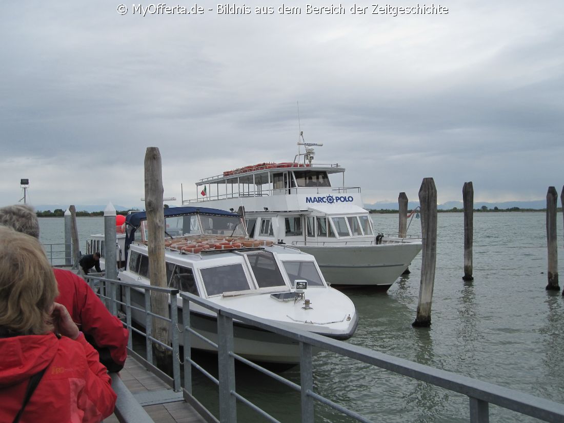Punta Sabbioni ist ein wichtiger Faehrhafen fuer die Wasserbusse von Venedig. Der Hafen liegt auf dem Festland auf einer Halbinsel. Er wird vor allem von Touristen genutzt, die in oder um den Badeort Lido di Jesolo oder Cavallino ihren Urlaub verbringen und eines Tagesausflug nach Venedig machen. Sogenannte Wasserbusse oder Vaporetti (Personenfaehren) bringen in der Saison taeglich viele tausend Touristen von Punta Sabbioni in etwa 30 Minuten direkt ins Zentrum der Altstadt von Venedig nahe dem Markusplatz. Die zwei wichtigsten Gebaeude am Platz sind der Dogenpalast und der Markusdom. Ein weiteres wichtiges Bauwerk ist der Markusturm, das Wahrzeichen von Venedig. Die beruehmte Wasserstrasse von Venedig Canale Grande muendet unweit des Platzes Piazza San Marco ins Meer. Beruehmt ist der Platz heute auch fuer luxurioese Restaurants und Cafes, Tauben und Hochwasser. Foto: Dipl.-Ing. Marek Walczak, alle Rechte vorbehalten! |