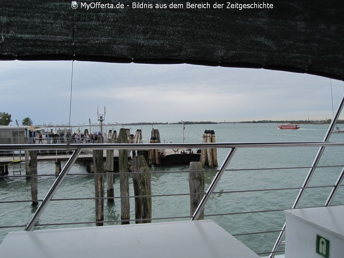 Punta Sabbioni ist ein wichtiger Faehrhafen fuer die Wasserbusse von Venedig. Der Hafen liegt auf dem Festland auf einer Halbinsel. Er wird vor allem von Touristen genutzt, die in oder um den Badeort Lido di Jesolo oder Cavallino ihren Urlaub verbringen und eines Tagesausflug nach Venedig machen. Sogenannte Wasserbusse oder Vaporetti (Personenfaehren) bringen in der Saison taeglich viele tausend Touristen von Punta Sabbioni in etwa 30 Minuten direkt ins Zentrum der Altstadt von Venedig nahe dem Markusplatz. Die zwei wichtigsten Gebaeude am Platz sind der Dogenpalast und der Markusdom. Ein weiteres wichtiges Bauwerk ist der Markusturm, das Wahrzeichen von Venedig. Die beruehmte Wasserstrasse von Venedig Canale Grande muendet unweit des Platzes Piazza San Marco ins Meer. Beruehmt ist der Platz heute auch fuer luxurioese Restaurants und Cafes, Tauben und Hochwasser. Foto: Dipl.-Ing. Marek Walczak, alle Rechte vorbehalten! |