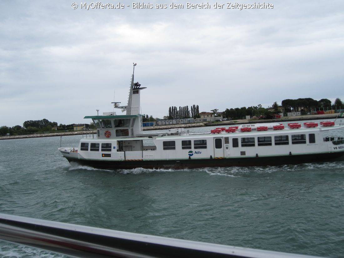 Punta Sabbioni ist ein wichtiger Faehrhafen fuer die Wasserbusse von Venedig. Der Hafen liegt auf dem Festland auf einer Halbinsel. Er wird vor allem von Touristen genutzt, die in oder um den Badeort Lido di Jesolo oder Cavallino ihren Urlaub verbringen und eines Tagesausflug nach Venedig machen. Sogenannte Wasserbusse oder Vaporetti (Personenfaehren) bringen in der Saison taeglich viele tausend Touristen von Punta Sabbioni in etwa 30 Minuten direkt ins Zentrum der Altstadt von Venedig nahe dem Markusplatz. Die zwei wichtigsten Gebaeude am Platz sind der Dogenpalast und der Markusdom. Ein weiteres wichtiges Bauwerk ist der Markusturm, das Wahrzeichen von Venedig. Die beruehmte Wasserstrasse von Venedig Canale Grande muendet unweit des Platzes Piazza San Marco ins Meer. Beruehmt ist der Platz heute auch fuer luxurioese Restaurants und Cafes, Tauben und Hochwasser. Foto: Dipl.-Ing. Marek Walczak, alle Rechte vorbehalten! |