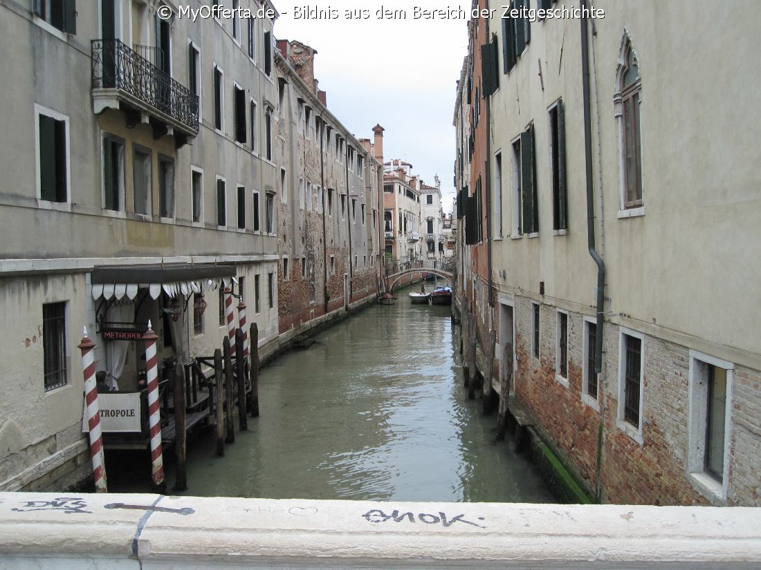 Punta Sabbioni ist ein wichtiger Faehrhafen fuer die Wasserbusse von Venedig. Der Hafen liegt auf dem Festland auf einer Halbinsel. Er wird vor allem von Touristen genutzt, die in oder um den Badeort Lido di Jesolo oder Cavallino ihren Urlaub verbringen und eines Tagesausflug nach Venedig machen. Sogenannte Wasserbusse oder Vaporetti (Personenfaehren) bringen in der Saison taeglich viele tausend Touristen von Punta Sabbioni in etwa 30 Minuten direkt ins Zentrum der Altstadt von Venedig nahe dem Markusplatz. Die zwei wichtigsten Gebaeude am Platz sind der Dogenpalast und der Markusdom. Ein weiteres wichtiges Bauwerk ist der Markusturm, das Wahrzeichen von Venedig. Die beruehmte Wasserstrasse von Venedig Canale Grande muendet unweit des Platzes Piazza San Marco ins Meer. Beruehmt ist der Platz heute auch fuer luxurioese Restaurants und Cafes, Tauben und Hochwasser. Foto: Dipl.-Ing. Marek Walczak, alle Rechte vorbehalten! |