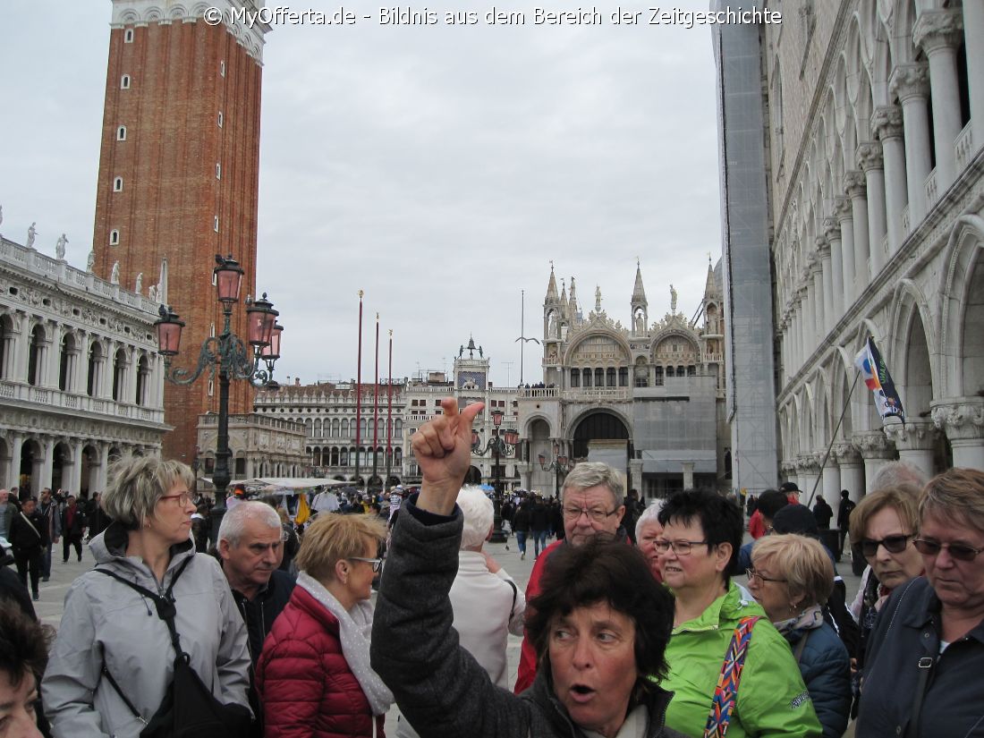 Punta Sabbioni ist ein wichtiger Faehrhafen fuer die Wasserbusse von Venedig. Der Hafen liegt auf dem Festland auf einer Halbinsel. Er wird vor allem von Touristen genutzt, die in oder um den Badeort Lido di Jesolo oder Cavallino ihren Urlaub verbringen und eines Tagesausflug nach Venedig machen. Sogenannte Wasserbusse oder Vaporetti (Personenfaehren) bringen in der Saison taeglich viele tausend Touristen von Punta Sabbioni in etwa 30 Minuten direkt ins Zentrum der Altstadt von Venedig nahe dem Markusplatz. Die zwei wichtigsten Gebaeude am Platz sind der Dogenpalast und der Markusdom. Ein weiteres wichtiges Bauwerk ist der Markusturm, das Wahrzeichen von Venedig. Die beruehmte Wasserstrasse von Venedig Canale Grande muendet unweit des Platzes Piazza San Marco ins Meer. Beruehmt ist der Platz heute auch fuer luxurioese Restaurants und Cafes, Tauben und Hochwasser. Foto: Dipl.-Ing. Marek Walczak, alle Rechte vorbehalten! |