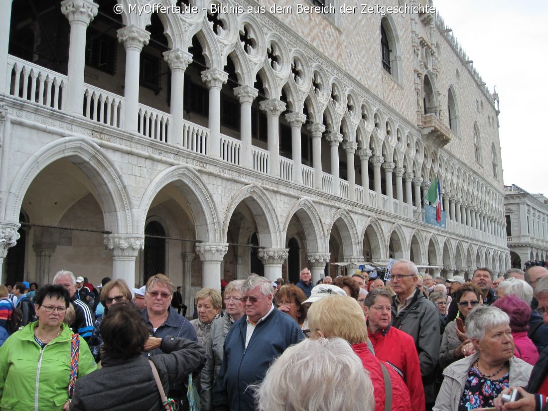 Punta Sabbioni ist ein wichtiger Faehrhafen fuer die Wasserbusse von Venedig. Der Hafen liegt auf dem Festland auf einer Halbinsel. Er wird vor allem von Touristen genutzt, die in oder um den Badeort Lido di Jesolo oder Cavallino ihren Urlaub verbringen und eines Tagesausflug nach Venedig machen. Sogenannte Wasserbusse oder Vaporetti (Personenfaehren) bringen in der Saison taeglich viele tausend Touristen von Punta Sabbioni in etwa 30 Minuten direkt ins Zentrum der Altstadt von Venedig nahe dem Markusplatz. Die zwei wichtigsten Gebaeude am Platz sind der Dogenpalast und der Markusdom. Ein weiteres wichtiges Bauwerk ist der Markusturm, das Wahrzeichen von Venedig. Die beruehmte Wasserstrasse von Venedig Canale Grande muendet unweit des Platzes Piazza San Marco ins Meer. Beruehmt ist der Platz heute auch fuer luxurioese Restaurants und Cafes, Tauben und Hochwasser. Foto: Dipl.-Ing. Marek Walczak, alle Rechte vorbehalten! |