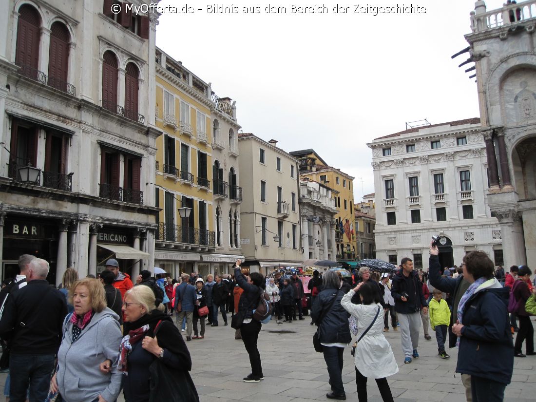 Punta Sabbioni ist ein wichtiger Faehrhafen fuer die Wasserbusse von Venedig. Der Hafen liegt auf dem Festland auf einer Halbinsel. Er wird vor allem von Touristen genutzt, die in oder um den Badeort Lido di Jesolo oder Cavallino ihren Urlaub verbringen und eines Tagesausflug nach Venedig machen. Sogenannte Wasserbusse oder Vaporetti (Personenfaehren) bringen in der Saison taeglich viele tausend Touristen von Punta Sabbioni in etwa 30 Minuten direkt ins Zentrum der Altstadt von Venedig nahe dem Markusplatz. Die zwei wichtigsten Gebaeude am Platz sind der Dogenpalast und der Markusdom. Ein weiteres wichtiges Bauwerk ist der Markusturm, das Wahrzeichen von Venedig. Die beruehmte Wasserstrasse von Venedig Canale Grande muendet unweit des Platzes Piazza San Marco ins Meer. Beruehmt ist der Platz heute auch fuer luxurioese Restaurants und Cafes, Tauben und Hochwasser. Foto: Dipl.-Ing. Marek Walczak, alle Rechte vorbehalten! |