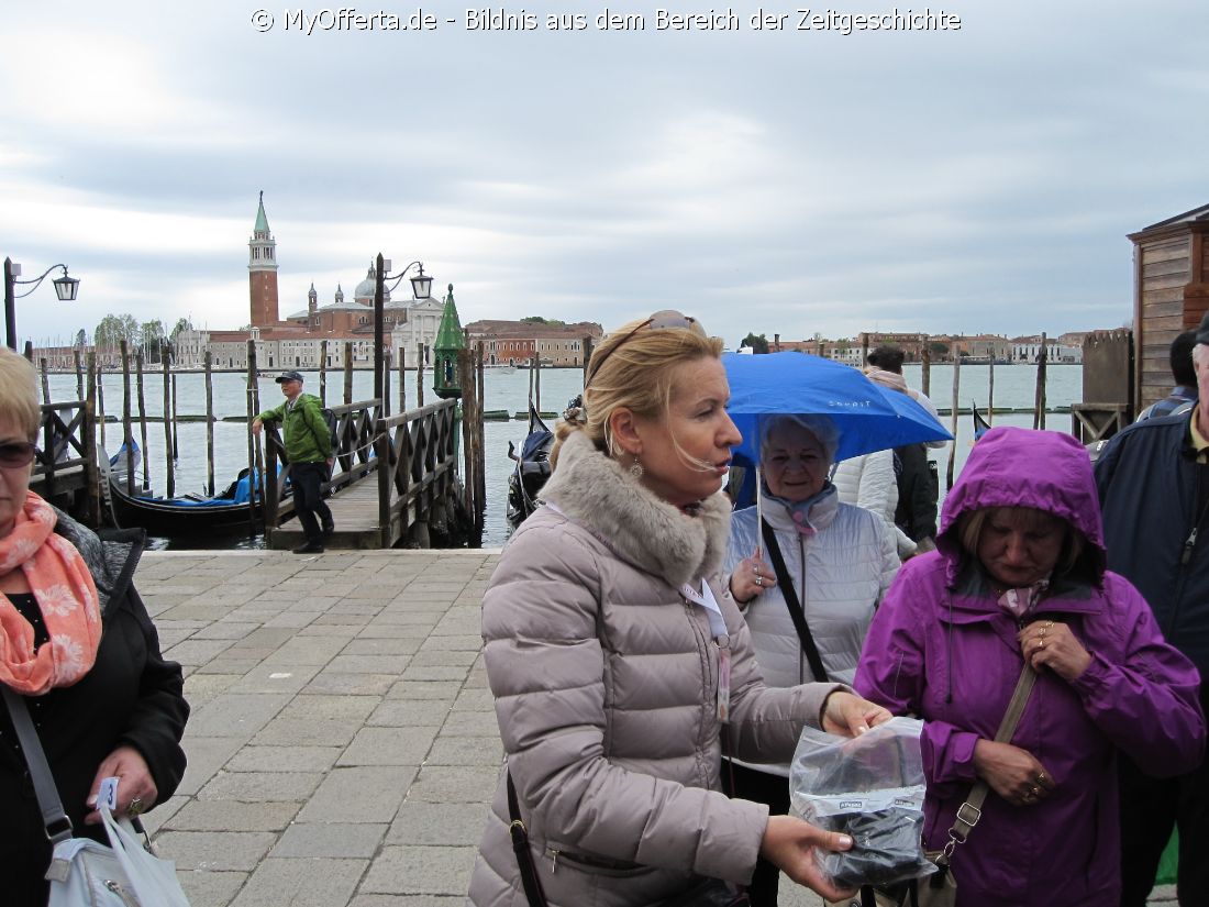 Punta Sabbioni ist ein wichtiger Faehrhafen fuer die Wasserbusse von Venedig. Der Hafen liegt auf dem Festland auf einer Halbinsel. Er wird vor allem von Touristen genutzt, die in oder um den Badeort Lido di Jesolo oder Cavallino ihren Urlaub verbringen und eines Tagesausflug nach Venedig machen. Sogenannte Wasserbusse oder Vaporetti (Personenfaehren) bringen in der Saison taeglich viele tausend Touristen von Punta Sabbioni in etwa 30 Minuten direkt ins Zentrum der Altstadt von Venedig nahe dem Markusplatz. Die zwei wichtigsten Gebaeude am Platz sind der Dogenpalast und der Markusdom. Ein weiteres wichtiges Bauwerk ist der Markusturm, das Wahrzeichen von Venedig. Die beruehmte Wasserstrasse von Venedig Canale Grande muendet unweit des Platzes Piazza San Marco ins Meer. Beruehmt ist der Platz heute auch fuer luxurioese Restaurants und Cafes, Tauben und Hochwasser. Foto: Dipl.-Ing. Marek Walczak, alle Rechte vorbehalten! |