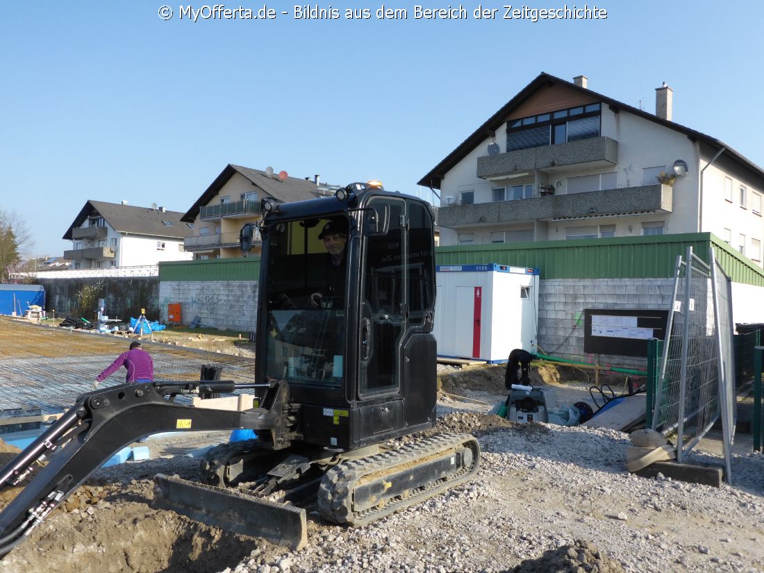 MyOfferta.de - Bildnis aus dem Bereich der Zeitgeschichte dokumentiert diesmal die Entstehung einer Kindertagesstaette in Linkenheim-Hochstetten. Aller Anfang haben Westenfelder Wegebau GbR und Baar Bauunternehmen aus Eggenstein-Leopoldshafen gegeben. Fuer Ihre Arbeit muss ich in einem Wort ein Kompliment aussprechen: Wunderwerk. Die Baustelle wurde von der Firma Blitzschutz-Peter aus Karlsruhe abgesichert. In weiteren Zeitabstaenden werden neue Fotos veroeffentlicht. Unter kleinen Ikonen ist die Zeit der Entstehung der Fotografie zu sehen. Foto: Dipl.-Ing. Marek Walczak, alle Rechte vorbehalten! |
